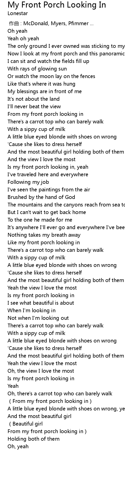 | [00:34.93] | Now I look at my front porch and this panoramic view |