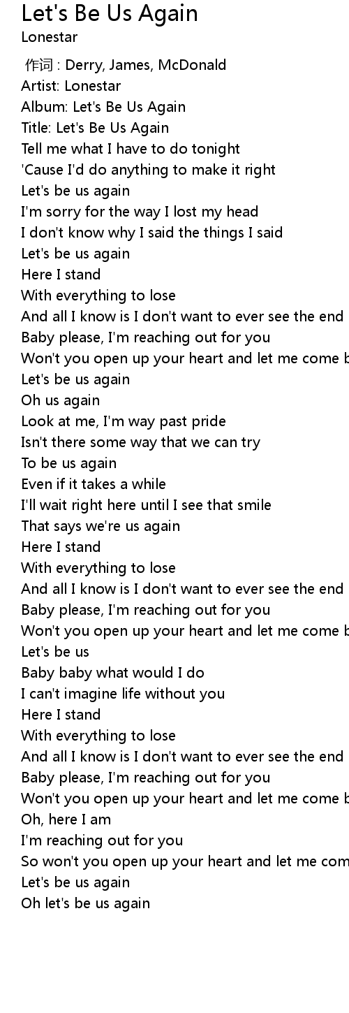 | [00:59.64] | Won' t you open up your heart and let me come back in |