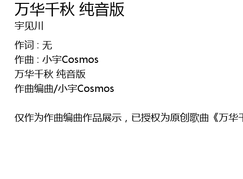 | 仅作为作曲编曲作品展示,已授权为原创歌曲《万华千秋》使用,未经许可请勿他用。请期待正式版歌曲版。(本曲为国家宝藏群像歌。) |