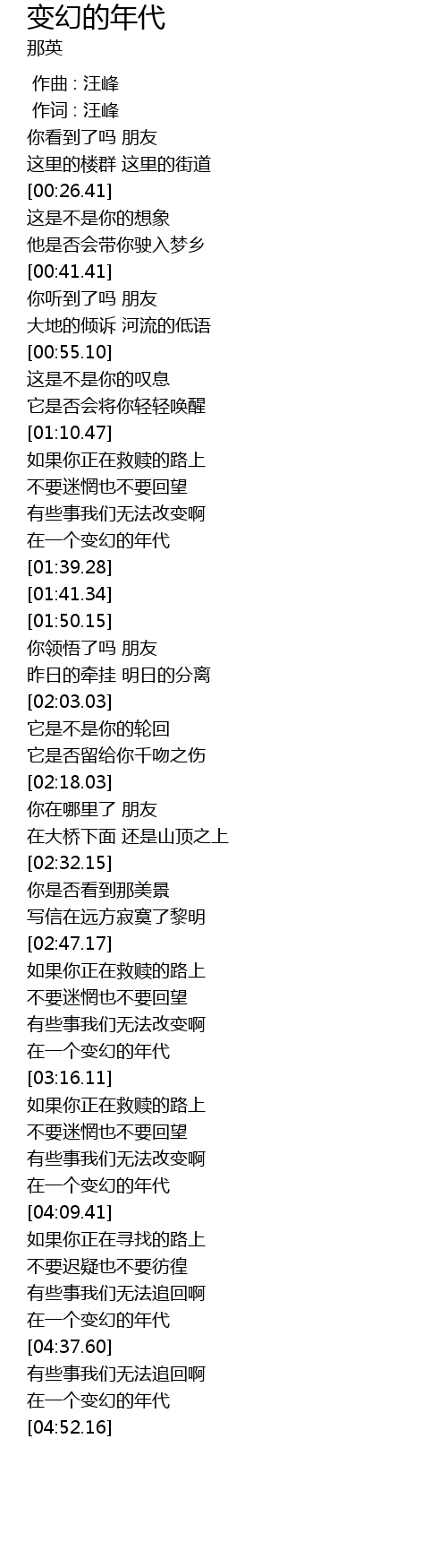 | [04:31.66] | zài yí gè biàn huàn de nián dài |