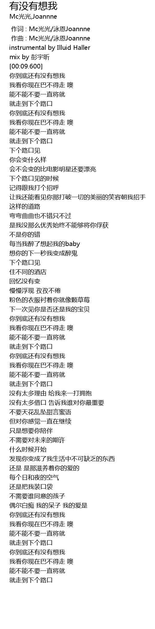 | [00:00.000] | 作词 : Mc光光/泳恩Joannne |