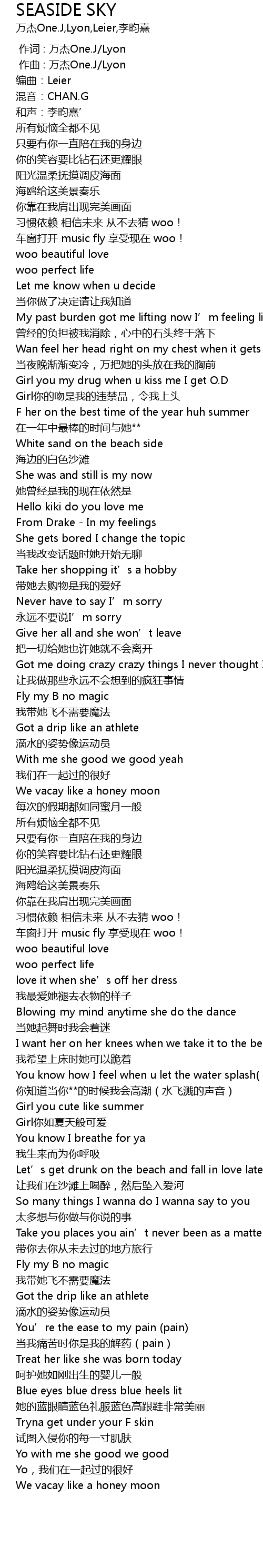 | [00:40.183] | 车窗打开 music fly 享受现在 woo! |