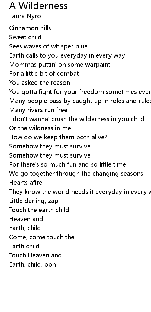 I don't wanna' crush the wilderness in you child |