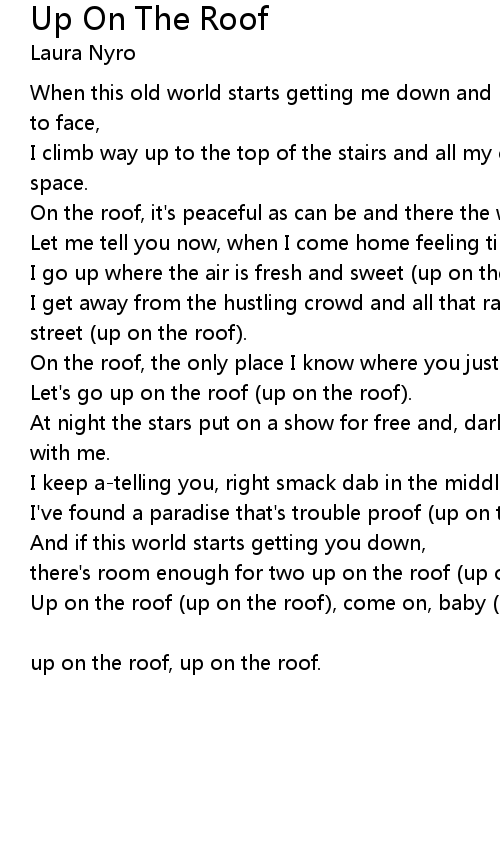 Up on the roof (up on the roof), come on, baby (up on the roof), come on, honey, |