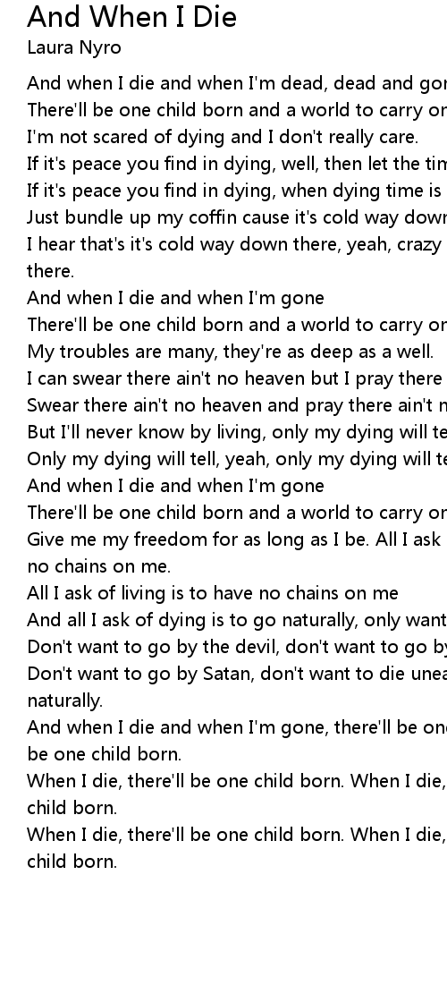 When I die, there'll be one child born. When I die, there'll be one child born. |