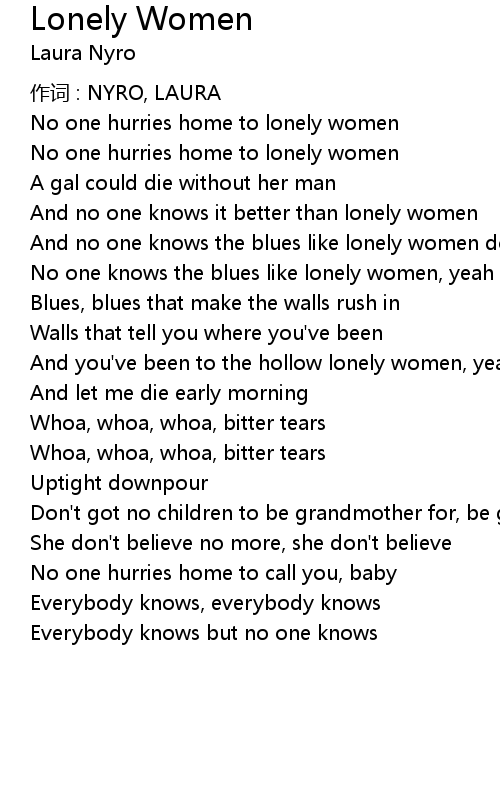 | And no one knows it better than lonely women | |