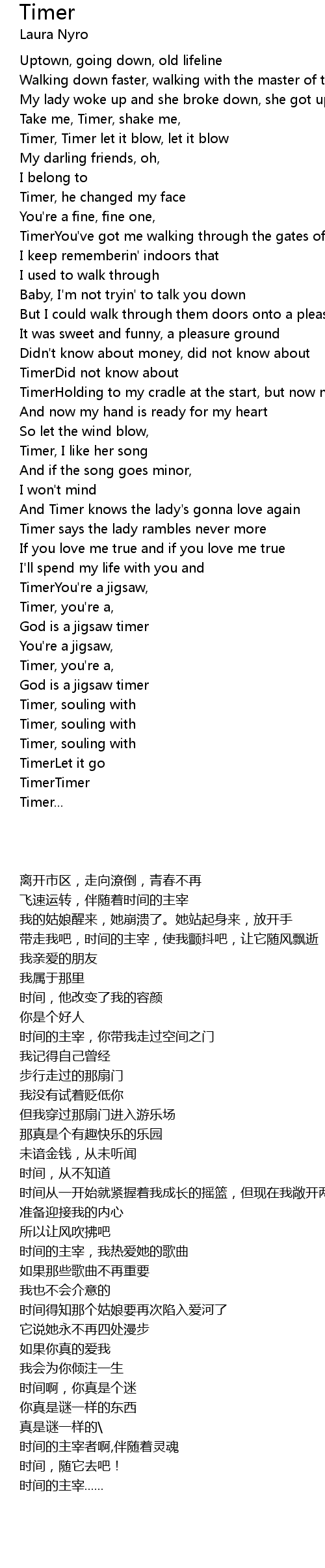 And Timer knows the lady's gonna love again |