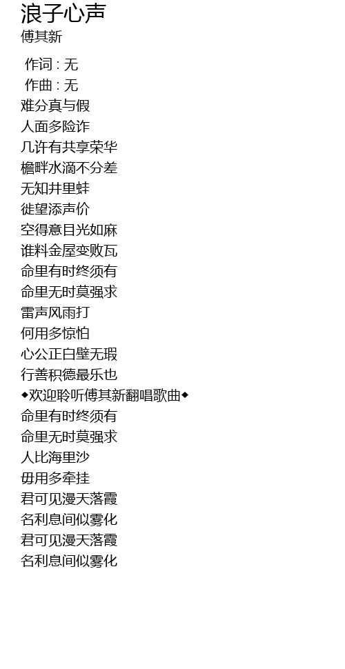 | [01:22.80] | ◆欢迎聆听傅其新翻唱歌曲◆ |