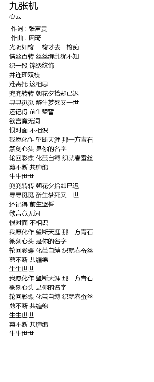 | [02:37.952] | lún huí cǎi dié huà jiǎn zì fù zhī jiù chūn cán sī |