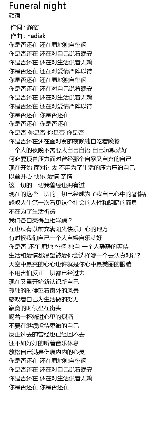 | [01:51.905] | 一个人的夜晚不需要太自言自语 自己沉默就好 |