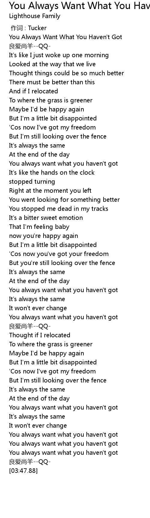 | [00:00.00] | You Always Want What You Haven' t Got |