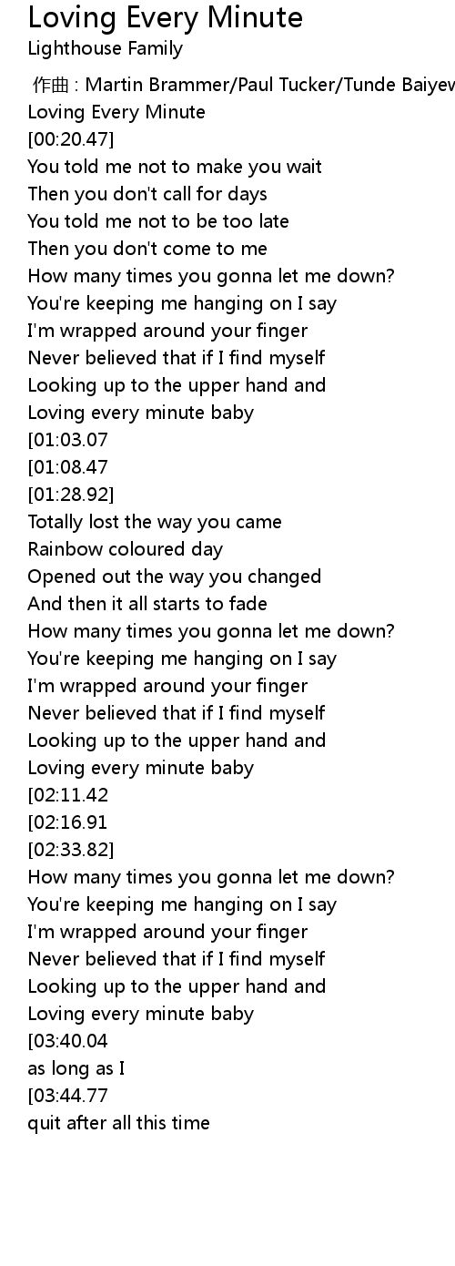 | [01:13.39][01:03.07] | How am I, ain't gonna keep up as long as I |
