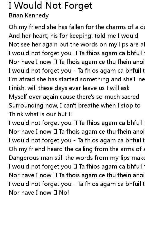 | I would not forget you Ta fhios agam ca bhfuil tu anois | |