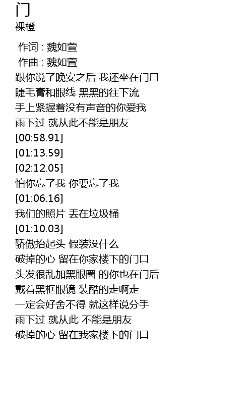 | [01:42.22] | 头发很乱加黑眼圈 的你也在门后 |
