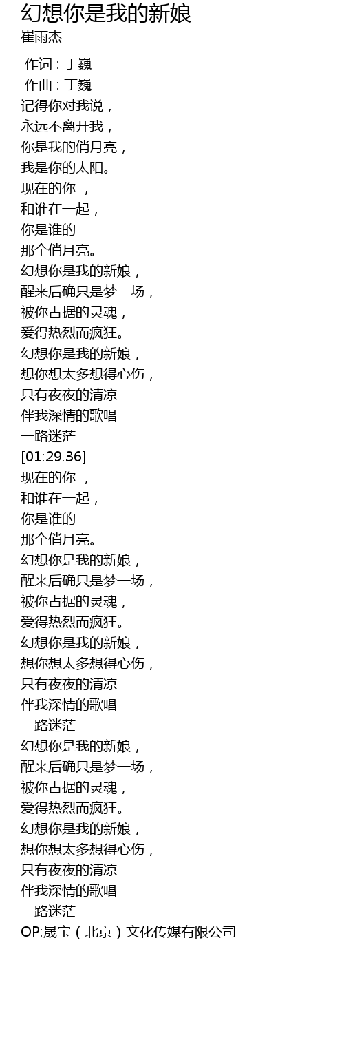 | [02:31.69] | huàn xiǎng nǐ shì wǒ de xīn niáng, |