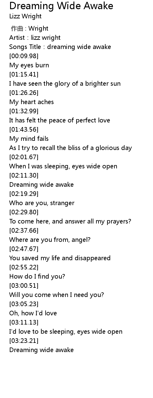 | [00:03.68] | Songs Title:dreaming wide awake |