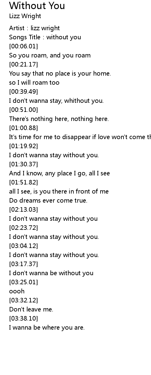 | [00:41.62] | I don' t wanna stay, whithout you. |