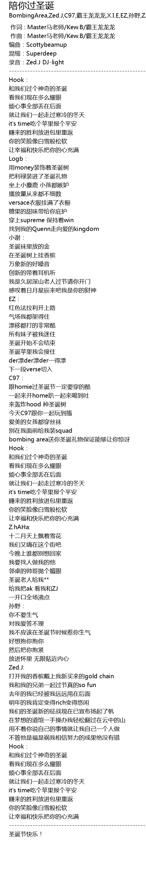 | [01:11.708] | 跟homie过圣诞节一定要穿的酷 |