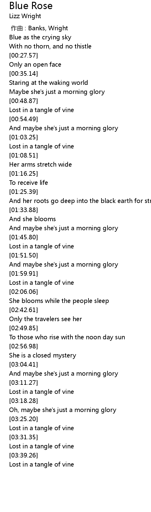 | [00:57.11] | And maybe she's just a morning glory |