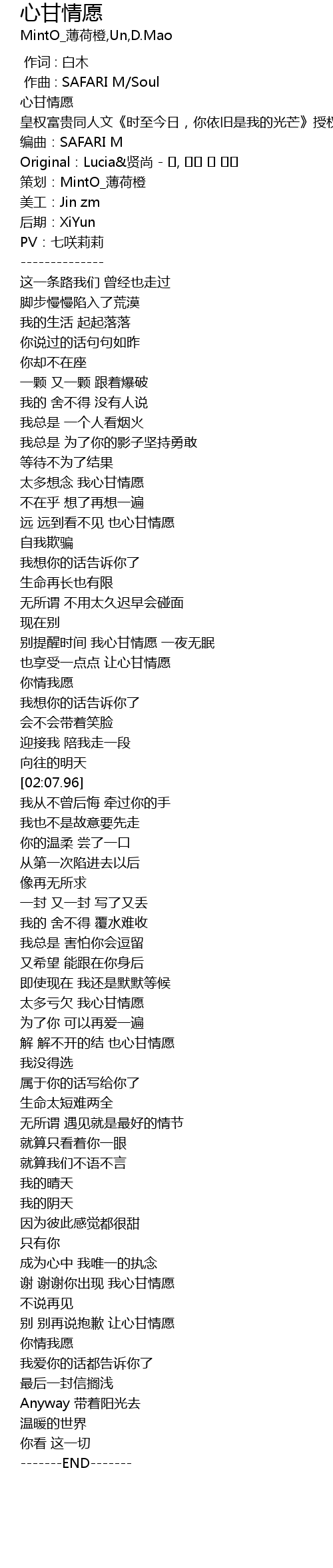 | [01:06.64] | 太多想念 我心甘情愿 |