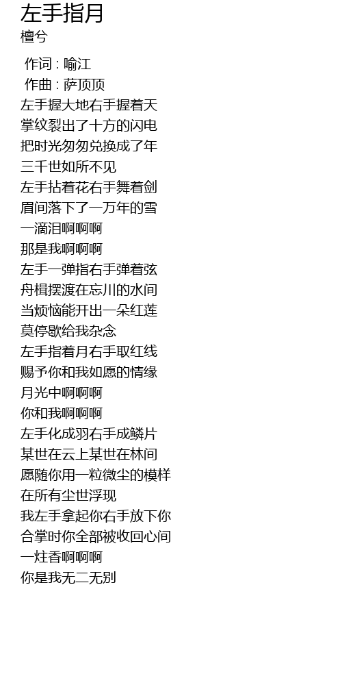 | [00:15.946] | zuǒ shǒu wò dà dì yòu shǒu wò zhe tiān |