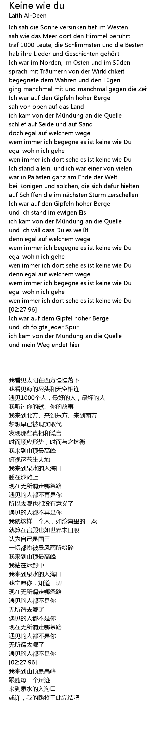 | [02:03.09] | wen immer ich dort sehe es ist keine wie Du |