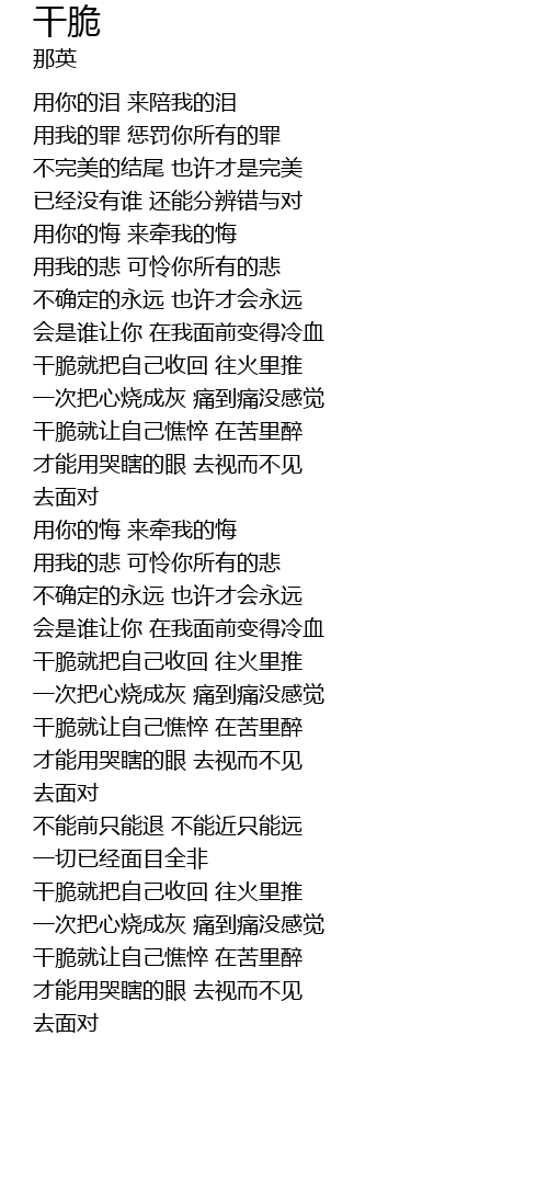 | [00:15.600] | 用你的泪 来陪我的泪 |