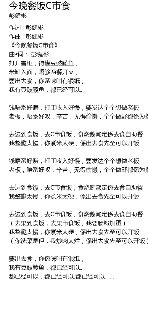 | (去果到食饭,去果市食饭,我要肠粉加蛋) | |