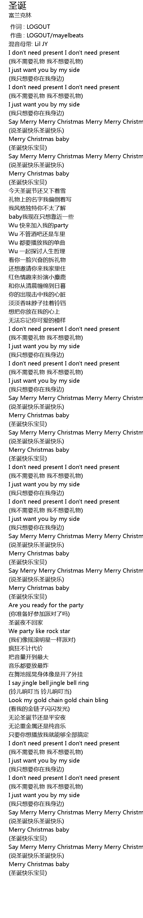 | [02:43.424] | shèng dàn kuài lè bǎo bèi |