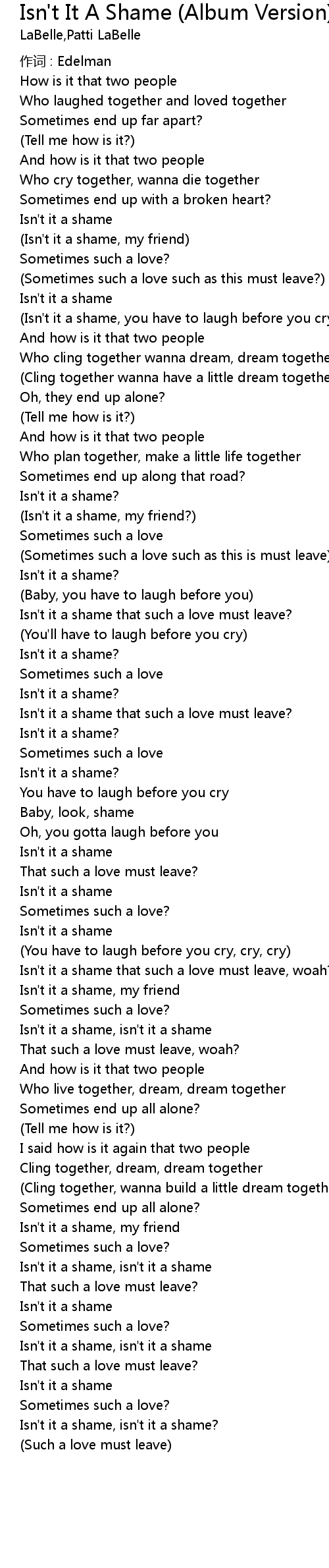 | Isn' t it a shame, you have to laugh before you cry? | |