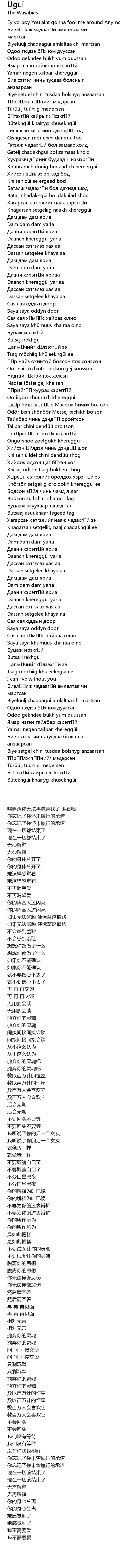 | [02:39.300] | Биелүүлж чадаагүй амлалтаа чи мартсан |