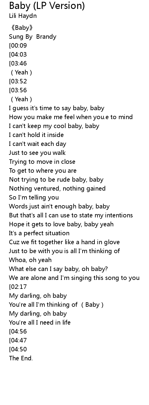 | [01:47] | Hope it gets to love baby, baby yeah |