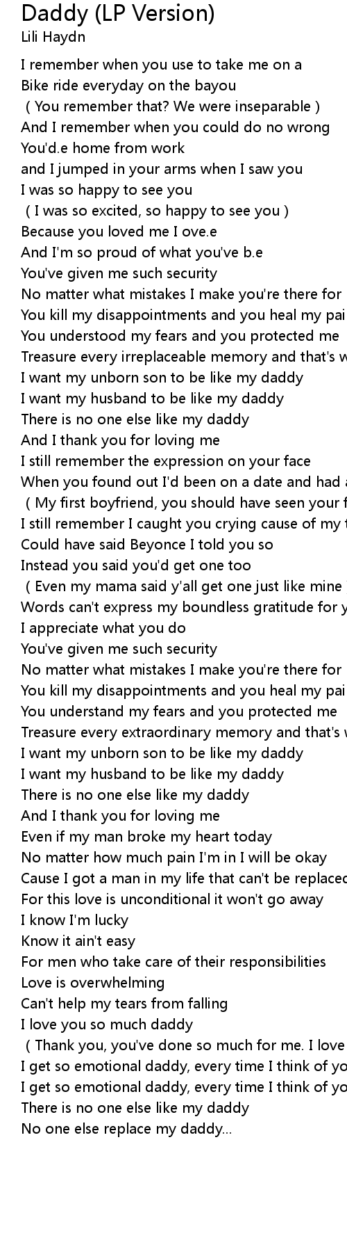 | [04:21.85] | Thank you, you' ve done so much for me. I love you daddy. |