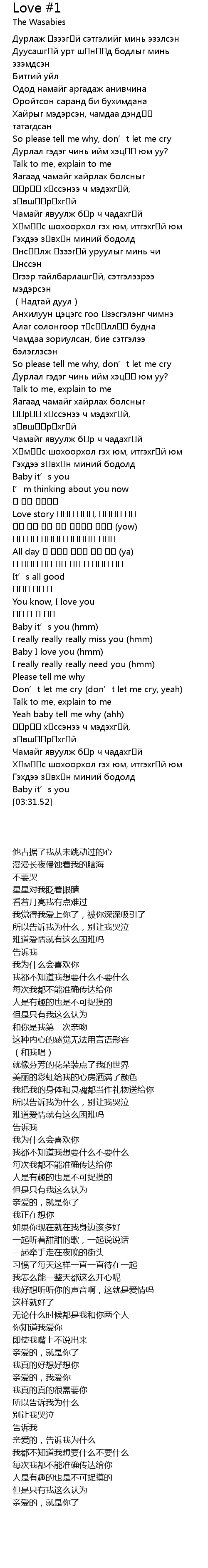 | [00:54.91] | Өөрөө хүссэнээ ч мэдэхгүй, зөвшөөрөхгүй |