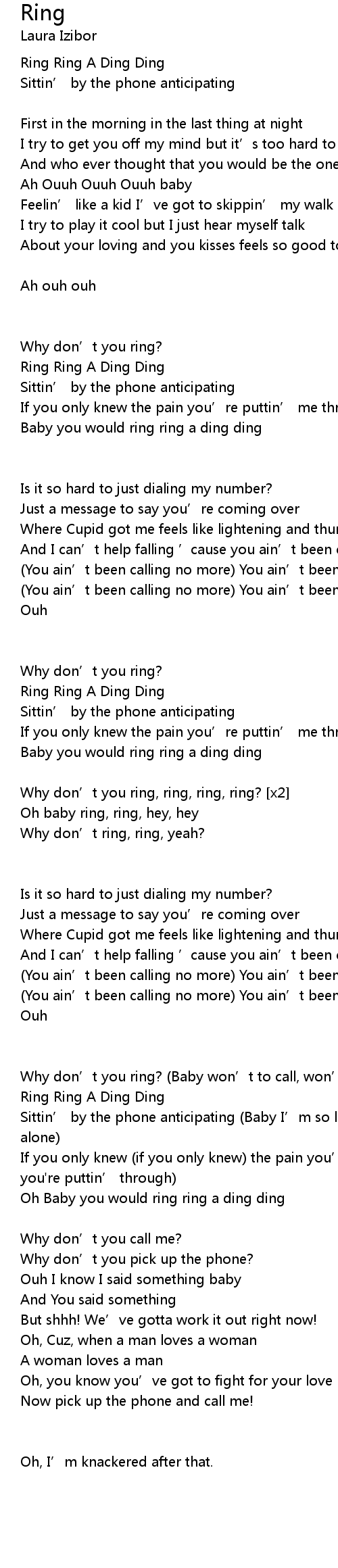 | Why don' t you ring, ring, ring, ring? x2 | |