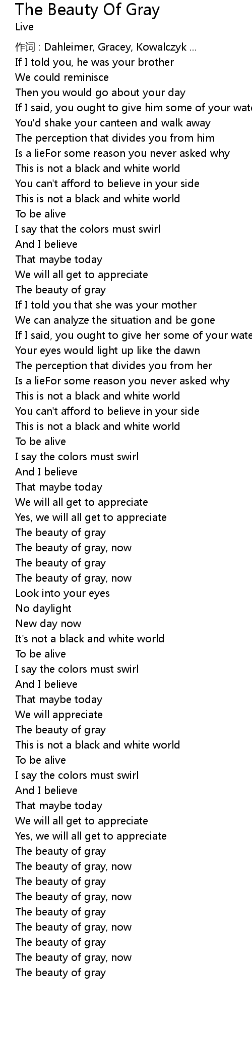 | 作词 : Dahleimer, Gracey, Kowalczyk ... | |