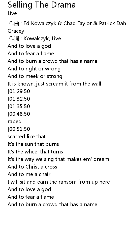 | [00:00.00] | 作曲 : Ed Kowalczyk & Chad Taylor & Patrick Dahlheimer & Chad Gracey |