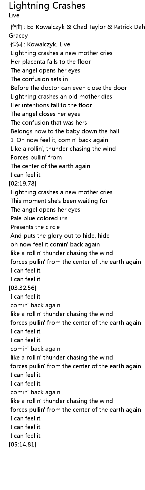 | [02:22.65] | Lightning crashes a new mother cries |