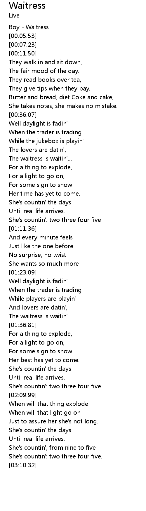 Boy - Waitress |