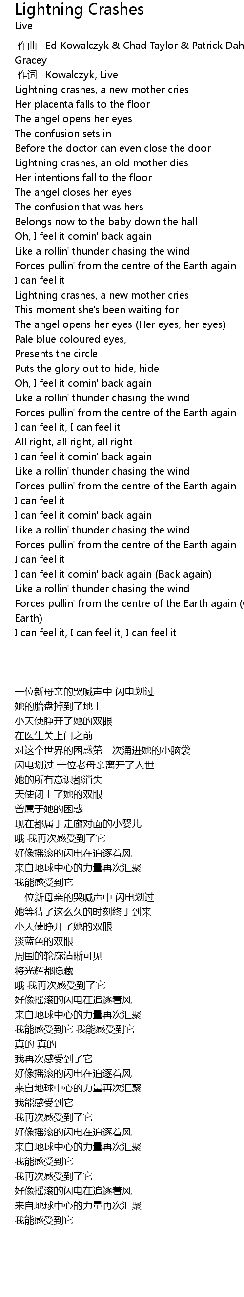 | [00:00.00] | 作曲 : Ed Kowalczyk & Chad Taylor & Patrick Dahlheimer & Chad Gracey |