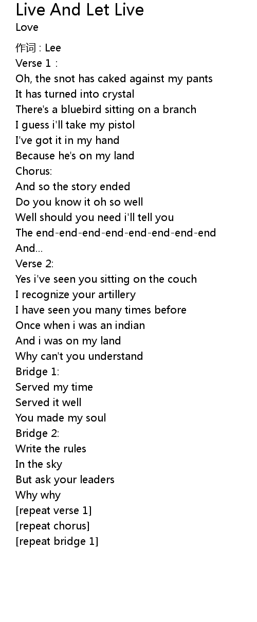 | Song | Live And Let Live |