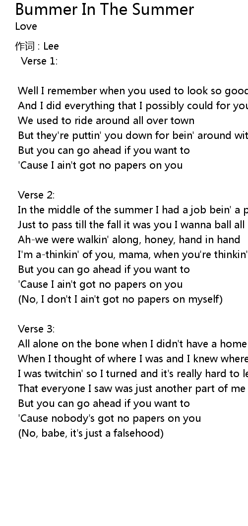 | Song | Bummer In The Summer |