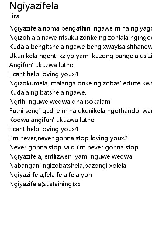 | Ngiyazifela,noma bengathini ngawe mina ngiyagcwala ngawe | |