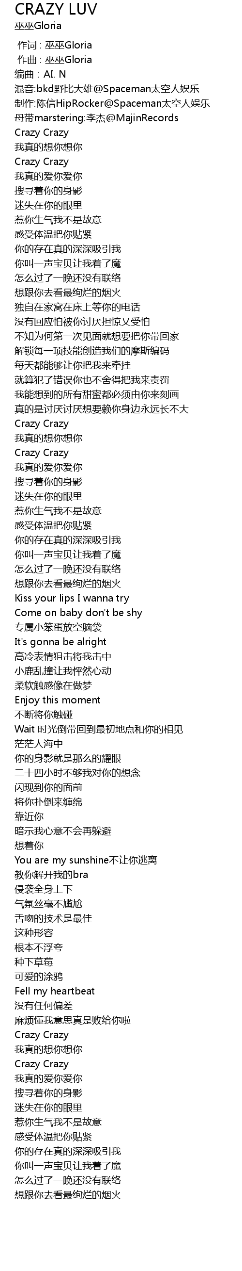 | [00:00.000] | 作词 : 巫巫Gloria |