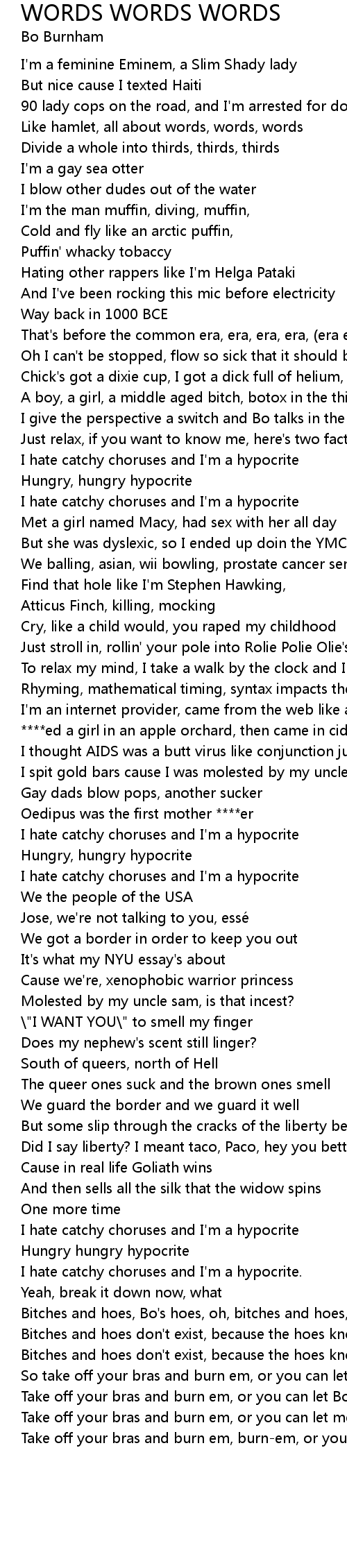 | Take off your bras and burn em, burnem, or you can let Bo Burnham burn em |