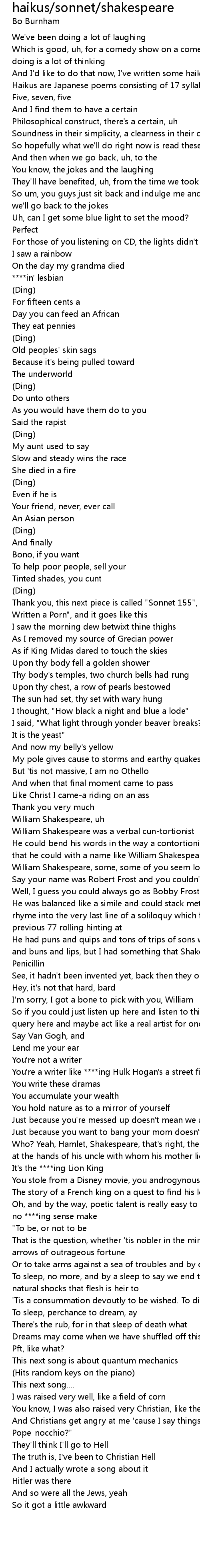 Thank you, this next piece is called "Sonnet 155", or "If Shakespeare Had Written a Porn", and it goes like this
