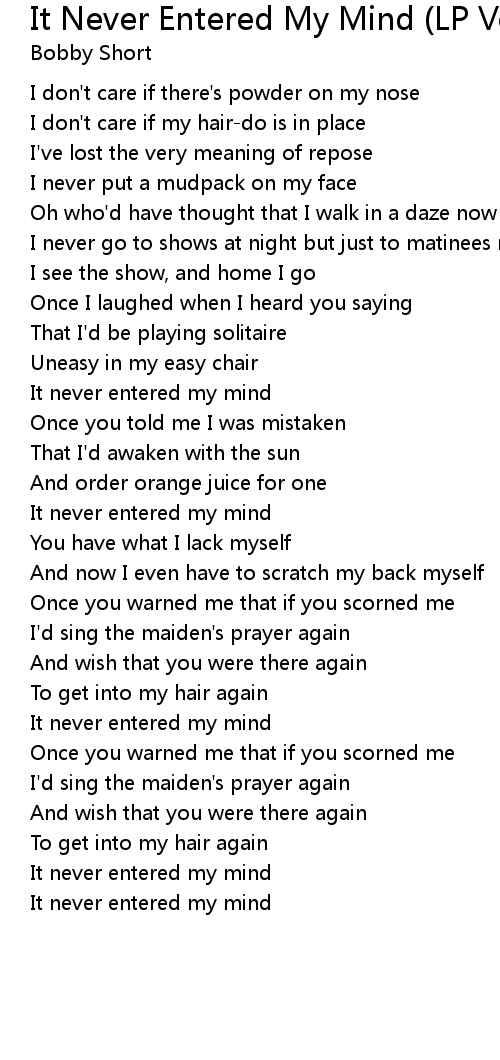 It never entered my mind |