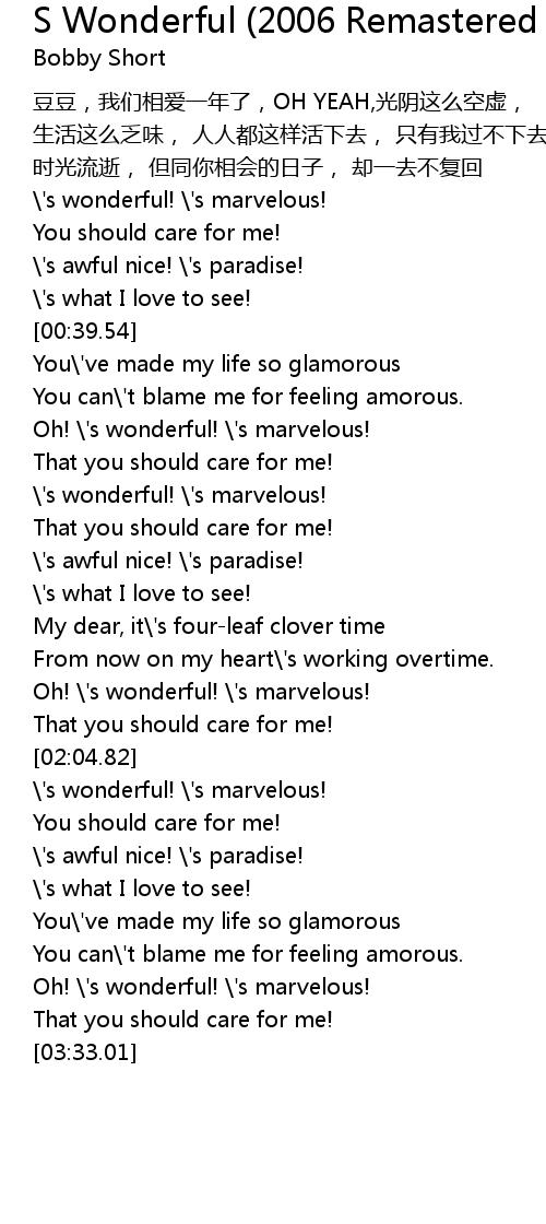 | [01:09.57] | ' s wonderful! ' s marvelous! |