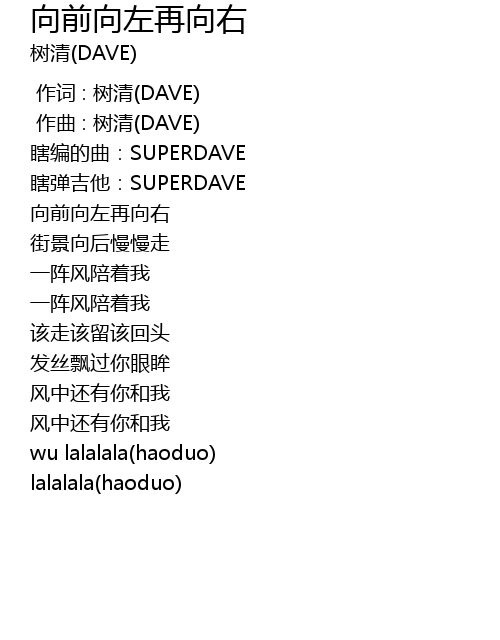 | [00:00.000] | 作词 : 树清(DAVE) |