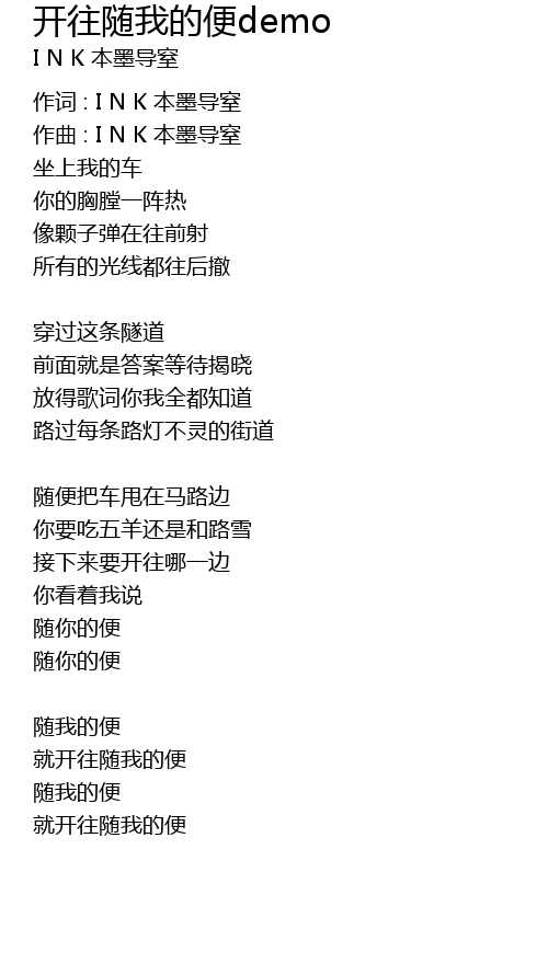 | zuò qǔ : I N K běn mò dǎo zhì | |